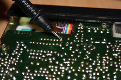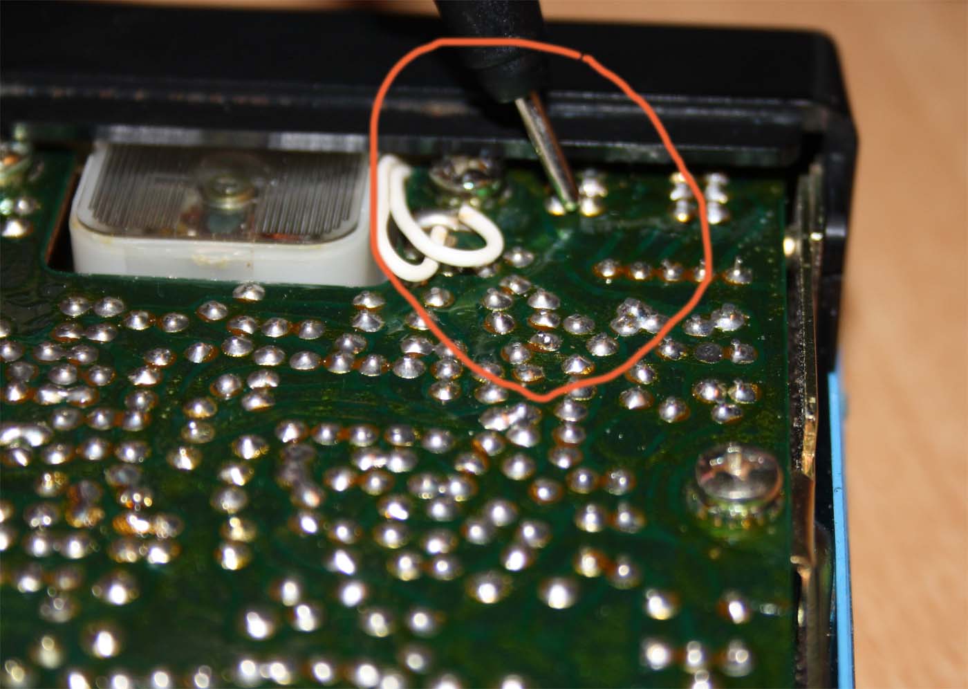 Katkaistaan PA-kytkimelle menevä folio piirilevyltä esim. varovasti puukolla raaputtamalla. Esimerkistä ei tullut kovin hieno, mutta toimiva.