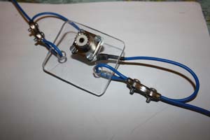 Dipolin keskipisteen voi toteuttaa monella tavalla. Monet alan liikkeet myyvät valmiita keskipaloja missä on UHF-liitin ja vedonpoistot yms. mutta nämä ovat melko kalliita. Keskipiste on helppo tehdä itse esimerkiksi 4~5mm paksusta pleksistä. Sopivan kokoiseen pleksipalaan porataan keskelle reikä UHF-liittimelle ja reunoille reiät elementtejä varten. Elementti-johdot pujotetaan reunan rei`istä läpi jonka jälkeen kiepsautetaan takaisinpäin ja lukitaan paikoilleen vaijerilukolla. Toinen elementti-johdin juotetaan UHF-liittimen keskinapaan ja toinen esim. abiko-kaapelikengällä UHF-runkoliittimen kiinnitysruuvin alle. Elementtien päihin on myös suositeltavaa laittaa eristeet joiksi käy esim. samaisesta pleksistä leikatut palaset joissa on molemmissä päissä reikä, toinen elementti-johtimelle ja toinen kiinnitysnarulle. Huomioithan dipolia mitoittaessasi viiksien kiinnityskohtien "kiepsautukseen" kuluvan johtimen, dipolin elementin pituus määräytyy elementin loppupäästä siihen kohtaan missä se on kiinnitetty UHF-liittimeen. Johtimen "kiepsautus" kiinnityskohdissa ei vaikuta antennin sähköiseen mittaan.