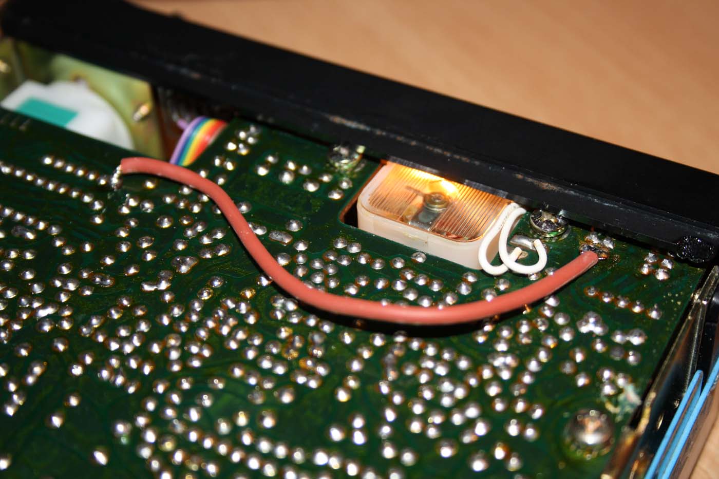 Katkaistaan PA-kytkimelle menevä folio piirilevyltä esim. varovasti puukolla raaputtamalla. Esimerkistä ei tullut kovin hieno, mutta toimiva.