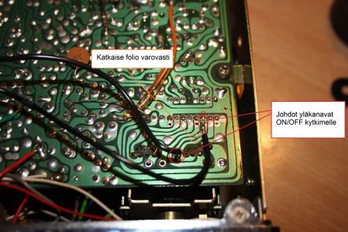 Kuva kertoo enemmän kuin tuhat sanaa? Kytkimen voit lisätä koneen takapaneeliin, kylkeen tai napata jonkun "turhan" esim ANL kytkimen etupaneelista tähän tarkoitukseen kuten ylläolevassa kuvassa esiintyvässä radiossa olen tehnyt..